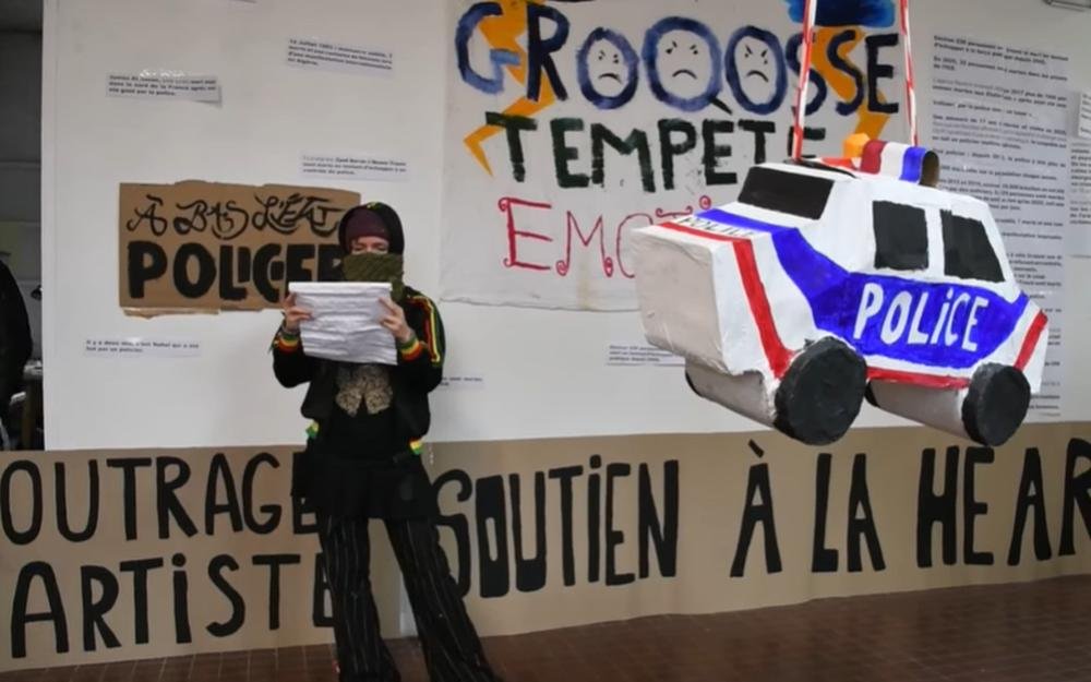 Le 29 janvier, à la HEAR de Mulhouse, des étudiants en école d’art ont organisé une performance pour dénoncer les violences policières. Celle-ci s’inscrivait dans le cadre d’un workshop sur le carnaval et comprenait une prise de parole politique ainsi qu’une piñata représentant une voiture de police, à l’intérieur de laquelle se trouvaient des messages dénonçant ces violences.